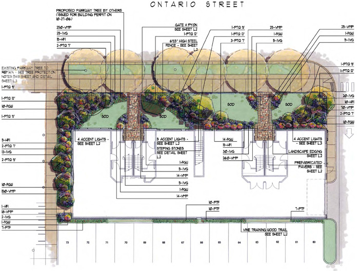 José Magán designed the landscape, developed construction documents, and created renderings to present to village officials and committees seeking construction approval for this 4 townhouses and a .16 acre site while at Linden Group.
