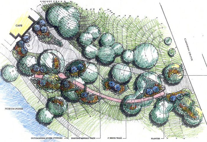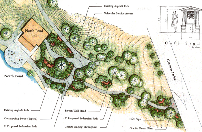 José Magán created the landscape design and construction documents for the vehicular and pedestrian access road and surrounding plantings for the North Pond CafĂ© in Lincoln Park while at TD&A.